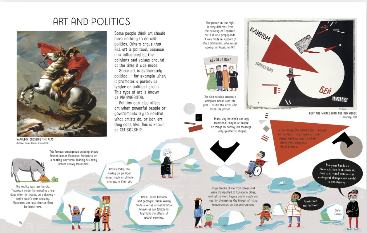 هنر چیست؟ هنر چگونه داستان می گوید؟ هنرمندان ایده های خود را از کجا می آورند؟ برای کشف ایده های انفجاری، رنگ های وحشی، مناظر غیرمنتظره و آثار هنری شگفت انگیز هنرمندان مشهور جهان، این کتاب جذاب را باز کنید. شامل پیوندهای سریع Usborne به وبسایتهای ویژه انتخاب شده است که در آن میتوانید یک تور مجازی در گالری داشته باشید، نقاشیهای معروف را از نزدیک تماشا کنید و موارد دیگر. منتشر شده با همکاری گالری ملی لندن.